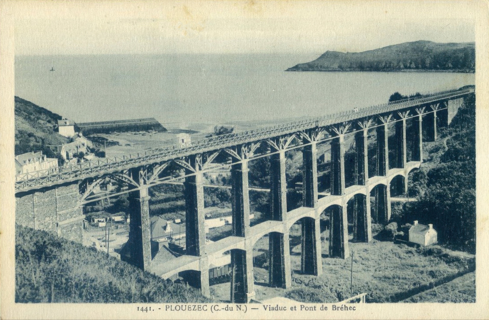 En ce qui concerne la carte La Cigogne, n⁰ 1441 - Viaduc et Pont de Bréhec et la numérotation des exemplaires présentés ici, il semblerait que cet éditeur ait édité une série sur la région, sans doute dans la deuxième moitié de la décennie. Je n' en connais que deux : celle-ci et celle de la chapelle Sainte-Barbe que je place à la suite à titre de référence, et non comptabilisée, puisqu' elle n' est pas encore visible dans la section des cartes sur Plouézec, celle-ci s' arrêtant en 1930.