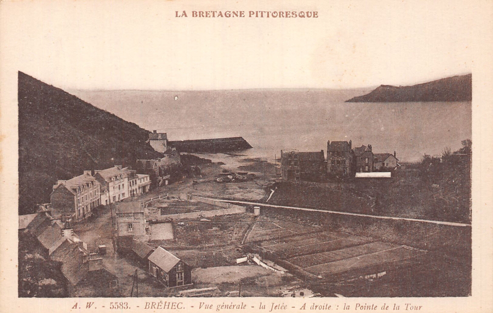 Notons que l' Anse Cochat ne fait pas partie de Bréhec stricto sensu, mais les cartes s' inscrivent dans la série sur Bréhec, sont référencées en tant que « les environs de Bréhec », et certaines montrent la Pointe de la Tour.