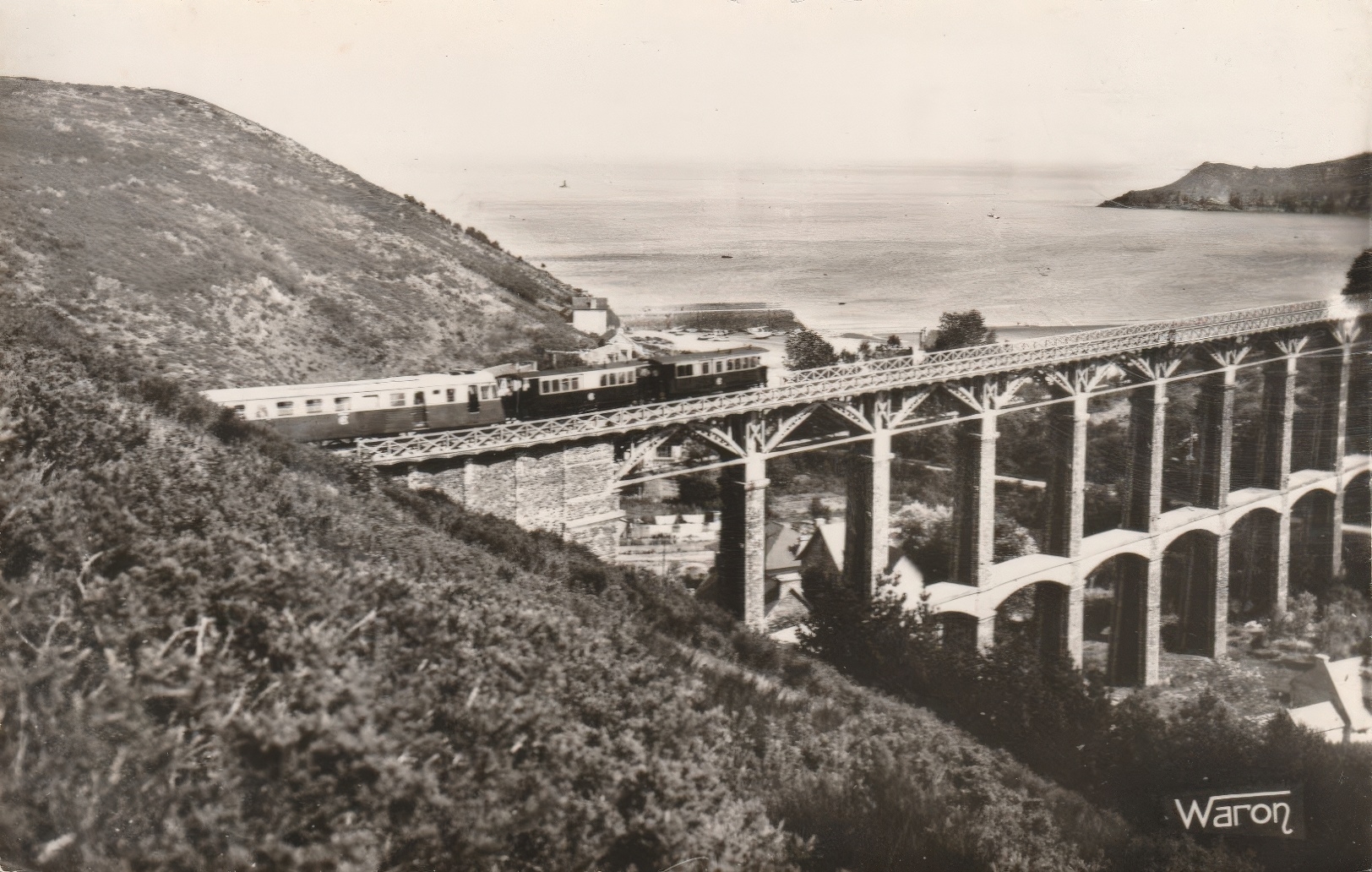 La carte Landouar qui montre Lulu parée de drapeaux sur le viaduc de Bréhec est un cliché du 31 décembre 1956 puisqu' il marque le dernier voyage du Petit Train. La preuve existe par recoupement avec les films amateurs tournés ce jour-là, que vous pouvez visionner à la page sur le Petit Train ici.