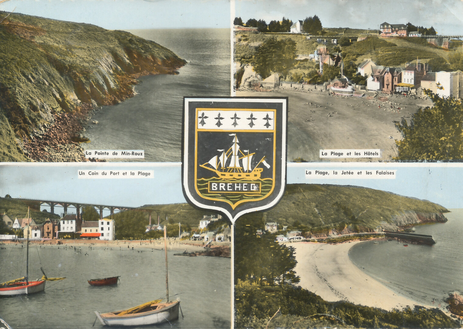 Contrairement aux cartes postales éditées dans les années 40, avec une impression de meilleure qualité mais dont les clichés datent de la décennie précédente, cette série date bien des années 50. Certaines des cartes ont reçu une colorisation au rendu peu flatteur, typique de ces années-là. Si l' on exclut l' agrandissement de la digue, ces images de Bréhec resteront les mêmes jusqu'aux années 90 et le démantèlement des hôtels.