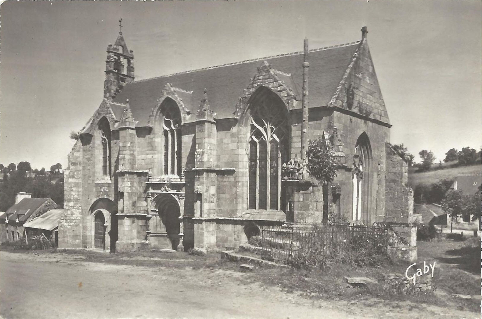 Jean-Baptiste Barat revient vers 1912 pour le cliché de l' intérieur de la chapelle (n⁰ 1346) puis l' année d'après pour la série plus conséquente qui nous fournit un aperçu du village et des autochtones à cette période. Ce dernier est complété par les cartes postales d' Émile Hamonic (biographie ici) qui prend ses clichés également vers 1912-1913 et dont les intitulés des cartes nous racontent la légende de la statuaire de la chapelle. Je n' ai aucune information sur la carte-photo du café-restaurant de la Lande-St-Jacques et la mention Vinet, autre que la date de circulation de 1913. On imagine que l' enseigne indique la présence d'un terrain de boule bretonne.
