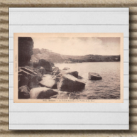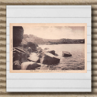 Les cartes n⁰ 5579, 5580, 5585 et 5586 m' ont aidé à dater la construction du chemin menant à la digue grâce à la comparaison faite avec la carte n⁰ 756 du premier diaporama. Sue ces cartes dont le cliché est estimé avoir été pris en 1931, pas encore d' élargissement du chemin alors qu' il apparaît dans l' autre série. Vu la date de 1933 de cette dernière, on peut donc estimer la date de construction du mur de retenue du nouveau chemin au début des années 30, peut-être 1932 ; en tout cas dans les deux ans qui semblent avoir séparé les deux séries de clichés. Cette construction doit sans doute être la raison de la mention présente sur la carte n⁰ 5585 les roches sont déchiquetées, écrite par une personne a priori mécontente de cet élargissement. Date à vérifier en consultant les archives de la mairie de Plouézec où le sujet fut sans doute débattu. Et toujours pas de muret sur la dernière de cette série, la n⁰ 5604.