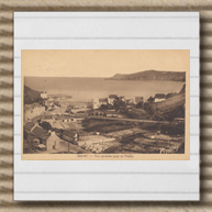 La carte n⁰ 9551 nous fournit une vue de la plage prise du port. On constate que le chemin menant à la digue a été élargi et que le muret avec son parapet rond facilite désormais l' accès des piétons. Cela restera inchangé jusqu'en 1975 et les travaux d' agrandissement de la digue et du perré. La carte n⁰ 9680 montre combien il y avait de roches mauves au niveau du port. Dans la même série, la carte n⁰ 9683 nous permet de voir le boulodrome tout neuf de l' Hôtel de la Maison Blanche avec sa tonnelle.