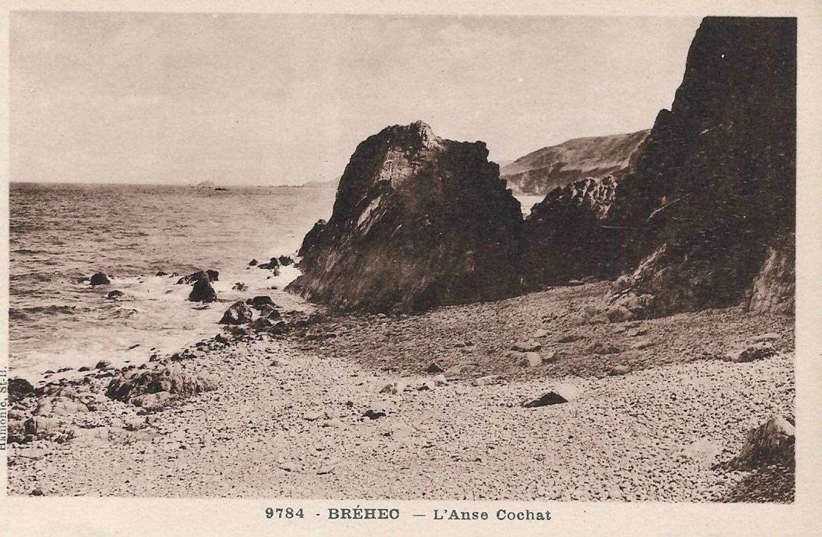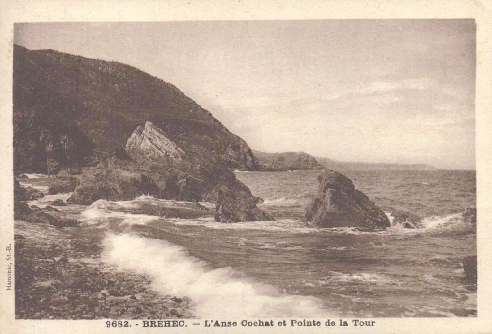 Notons que l' Anse Cochat ne fait pas partie de Bréhec stricto sensu, mais les cartes s' inscrivent dans la série sur Bréhec, sont référencées en tant que « les environs de Bréhec », et certaines montrent la Pointe de la Tour.