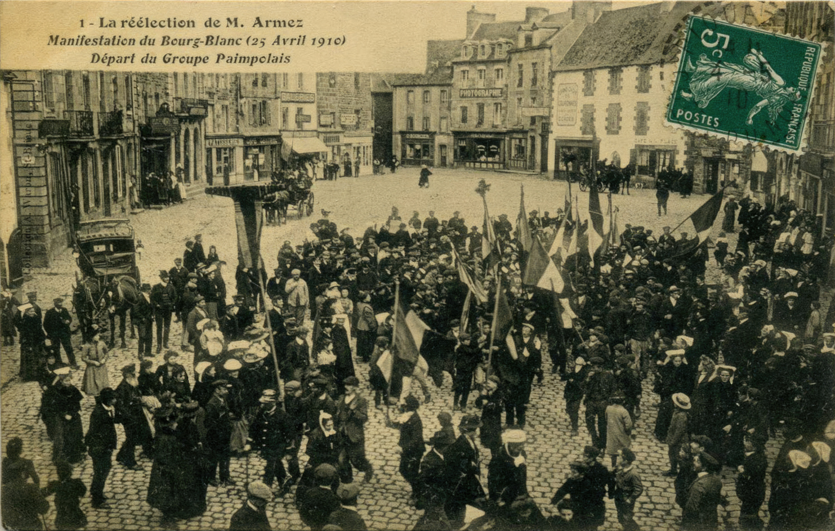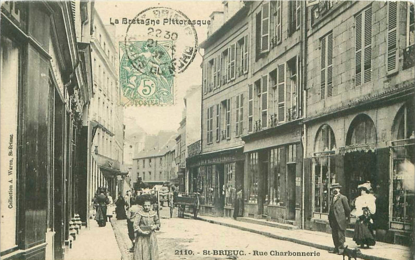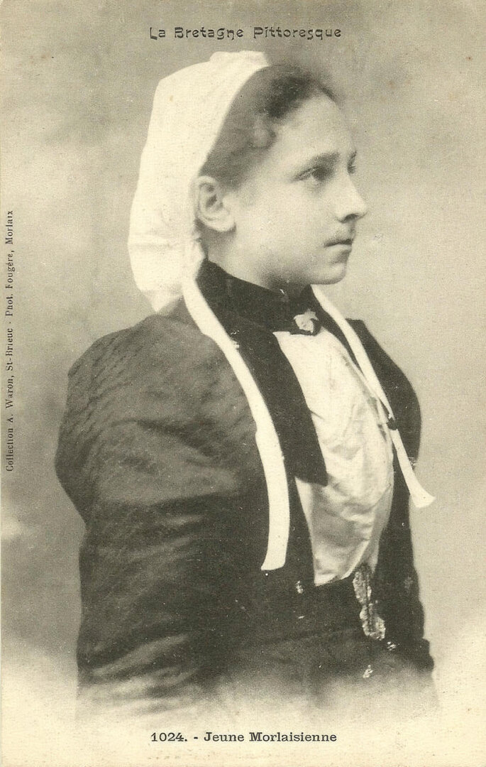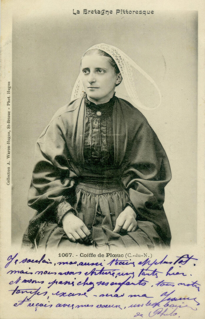 Nous avons vu supra que les notions d' identité bretonne, de patrimoine breton, sont fortes en cette époque. En 1902 (aucun exemplaire vu circulé en 1901 à ce jour), Waron lance une nouvelle collection qui reflète la volonté de mettre en avant la culture bretonne qu' il intitule La Bretagne Pittoresque (cliquez sur la photo référence 1046. - Costume de Scaer (Finistère) pour la voir en grand format ainsi que son dos circulé en 1902). Il réutilise également ce qui est peut-être sa toute première carte, à savoir la vue de la cathédrale et de l'hôtel de ville. En tout cas, il lui donne le numéro 1 de sa nouvelle collection (cliquez sur la carte pour l'afficher en grand en mode paysage).