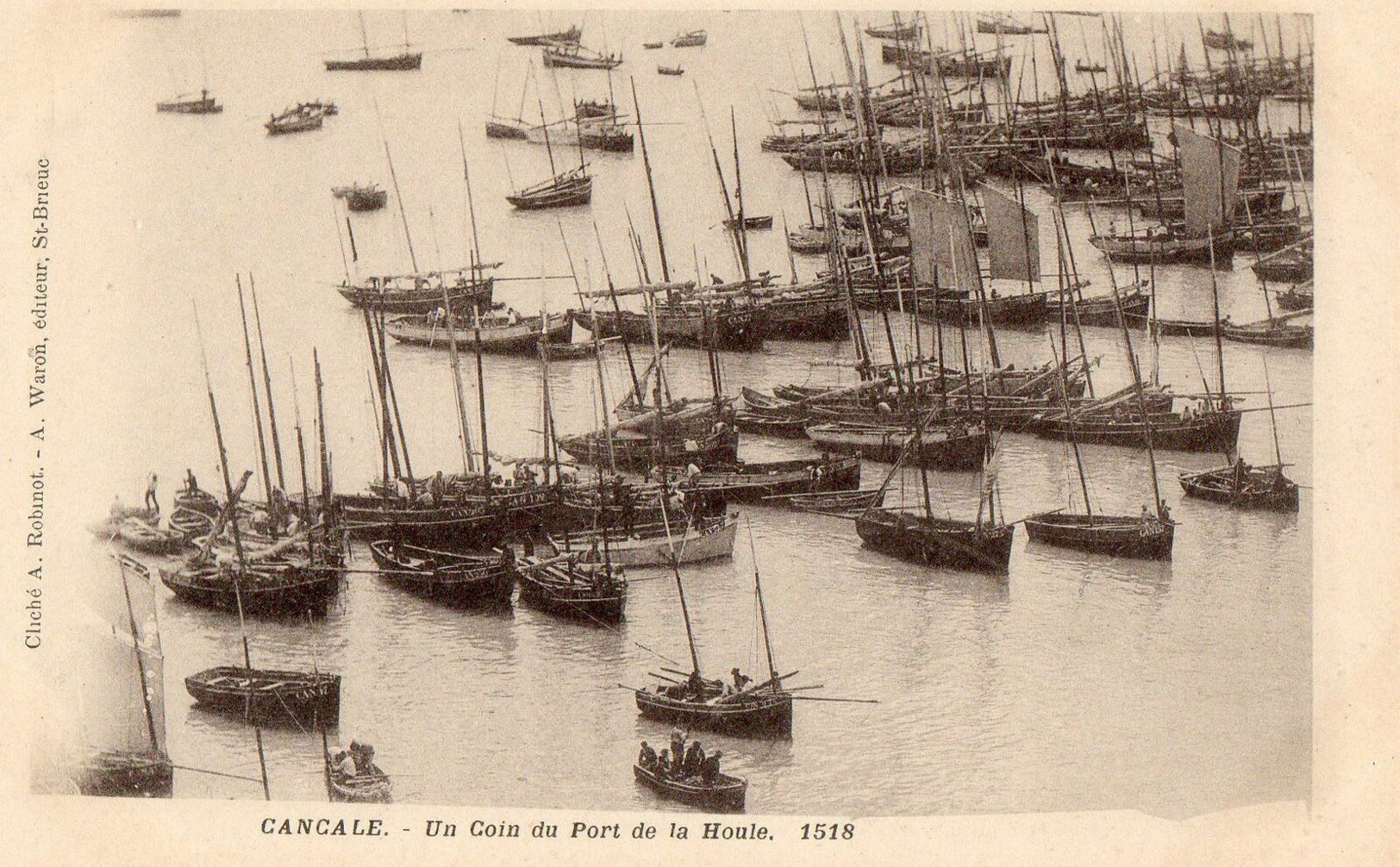 À l' est de Saint-Brieuc, il collabore notamment avec les photographes-éditeurs Augustine Lesturgeon à Dinard, qui reprend l' atelier de photographie de son mari Ambroise, décédé en 1897. La carte n⁰ 1 indique le nom du photographe. Sur les deux suivantes, à savoir la n⁰ 740 de 1902 pour la réédition dans la collection La Bretagne Pittoresque, et n⁰ 741 circulée en 1901, la mention Lesturgeon a disparu ; néanmoins présente sur la carte n⁰ 781 du Mont Saint-Michel ( !). Waron édite également dans ses collections des clichés d' Amédée Robinot de Cancale (cartes n⁰ 5 à 23) dont la première carte sans numérotation est suivie d'exemples d' une série d' au moins 24 cartes. La première circulation en ma possession remonte à 1901.