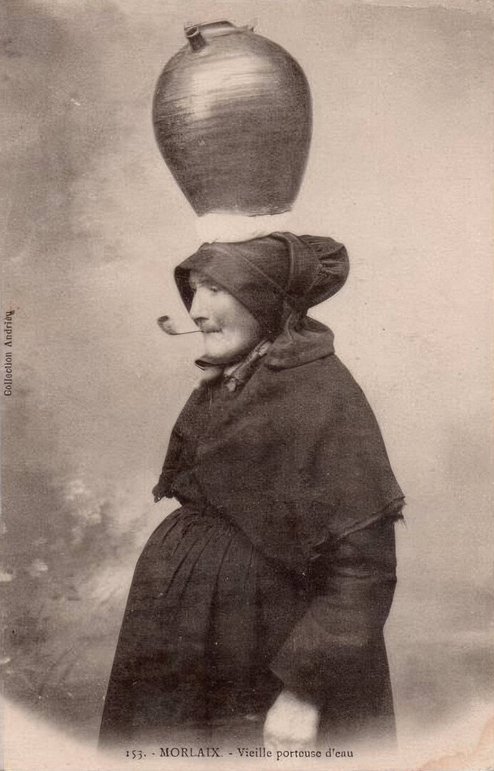 À l' ouest de Saint-Brieuc, Waron édite aussi des confrères puisqu' il noue une relation professionnelle avec G. Faivre, libraire à Brest (cartes n⁰ 1 à 5). De même, Charles Torty, aîné de trois frères qui seront tous photographes à Paimpol, lui fournit des clichés de personnages et de la ville (cartes n⁰ 6 à 15). Toujours à cette époque, il existe une importante collaboration avec Marie-Rose Fougère de Morlaix (diaporama n⁰ 2), dont la carte 1001 - Jeune fille de l' Île de Batz est sans doute un cliché de la fin du 19e vu la date de décès de son mari, Jean-Baptiste, en 1898. Comme Augustine Lesturgeon, Rose Fougère (qui signe également ses clichés Veuve Fougère) reprend l' atelier et commence à vendre des cartes de Morlaix et des alentours en 1900. La collaboration avec Waron commence par la reprise de clichés de Jean-Baptiste (cartes n⁰ 1 à 3) mais c' est le lancement de sa collection La Bretagne Pittoresque en 1902-03 (voir infra) qui va contribuer à faire connaître les travaux originaux de la Veuve Fougère (cartes n⁰ 4 à 15) qui fournira alors des clichés à Émile Andrieu (carte n⁰ 16), Ernest Le Deley (cartes n⁰ 17 et 18) ou encore Joseph-Marie Villard (cartes n⁰ 19 à 22) peu après les premiers clichés édités dans cette collection. Enfin, Waron édite également des clichés du Morlaisien Émile Andrieu (cartes n⁰ 20 et 21).