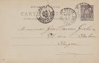 Plouézec : timbres type Sage 40 cts avec cachet de 1898 (droite).