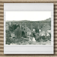 Jean-Baptiste Barat revient en 1916 (carte n⁰ 6). Le Viaduc est en grande partie terminé, même si certains travaux se poursuivent jusqu'en 1918. C'est ici la version sans son deuxième tablier. Les cartes n⁰ 7, 8 et 9 font partie des toutes premières éditées par Auguste Couée (références 14 et 16 — si vous connaissez la 15... ! — et 43) en 1916 (datation confirmée par une carte de la même série dont le timbre fut affranchi cette année-là). J'adore la prise de vue et les personnages de la référence 16. Quel beau panorama cela devait-il être ! La référence 43 met en évidence le petit chemin qui descendait de la halte jusqu'au village. Il n' existait pas encore de route de la Corniche, ni d'escalier en béton, construit plus tard à l' initiative des propriétaires de l' Hôtel Beau Rivage, la famille Porcheron. La carte n⁰ 10 d' Émile Hamonic date de 1919-1920 (à confirmer, mais sans doute à un an près, et en tout cas avant la construction du second tablier) et montre une perspective autre du Viaduc originel. Armand Waron prend le cliché de la carte n⁰ 11 en 1931, sans doute l' un des plus intéressants, car il donne une très belle impression de la majesté de cet ouvrage, et montre également l' estacade située à Pont-Huon, celle dont on peut voir les restes aujourd'hui encore. Les photographies n⁰ 12 et 13 proviennent de la famille Porcheron et, comme les cartes n⁰ 14 et 15 datent des années 50. La photographie n⁰ 12 est intéressante en ce qu' elle montre la passerelle située juste avant le viaduc, qui n' apparaît que très rarement sur les cartes postales. Celle qui apparaît en n⁰ 16 date des années 50. La carte n⁰ 17 date des années 60. La carte n⁰ 18 est également du début de cette décennie puisque le développement du lotissement de la Horaine à droite ne montre pas encore de constructions. Je ne possède aucune carte postale du début des années 70 montrant le viaduc.