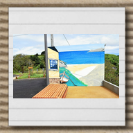 Lors des travaux de modernisation de Bréhec, le SIVOM avait lancé un appel à projet pour l’embellissement du transformateur électrique sur les hauteurs au niveau de l'ancien hôtel Beau-Rivage. C'est Guénola Jouanny, professeure d'art plastique et ancienne élève des Beaux-Arts de Paris, qui réalisa la fresque d'habillage du transformateur. Sa réalisation, fruit de 105 heures de travail, est appréciée de tous. Elle camoufle ainsi un bâtiment qui était peu agréable à l'œil tout en accompagnant le renouveau visuel du Village marin. Elle a su mettre en valeur l'histoire et le relief de Bréhec en réalisant cette fresque sous la forme d'une carte postale renvoyant à l'époque où le Petit Train des Côtes-du-Nord traversait la baie de Bréhec en empruntant le Viaduc. Pour cela, elle utilisa des documents d'archive afin de respecter l'échelle. Guénola ajouta un Spitfire de la deuxième guerre mondiale, clin d'œil au réseau Shelburn. À ce propos, pas la seule fantaisie de l'artiste ; en effet, l'œil de lynx de ceux qui connaissent Bréhec comme leur poche aura remarqué que la Pointe de la Tour ressemble étrangement à un crocodile ! Photographies © Le Télégramme et Ouest-France. Pour cette inauguration le 18 juillet 2020, en compagnie de l'artiste figurent : Rozen Thomas et Yvon Simon à gauche, Michel Gourdain et Alain David à droite ; Rozen et Alain ayant fourni les archives utilisées par Guénola pour son travail.